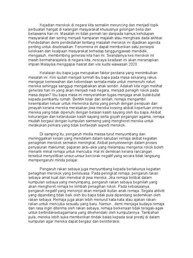 Pelbagai usaha telah diambil oleh kerajaan untuk mengatasi masalah ini namun masih sukar diatasi. Karangan net blog archiv isi karangan rokok punca kesan negatif merokok 13 07 2012 at 12 00 am click sini untuk isi karangan mengenai rokok halangan dan langkah. Masyarakat masih disogokkan dengan gejala merokok yang membimbangkan. Karangan cemerlang spm isu tabiat merokok dalam menongkah era dunia tanpa sempadan pelbagai masalah timbul selaras dengan kemajuan malaysia di persada global.