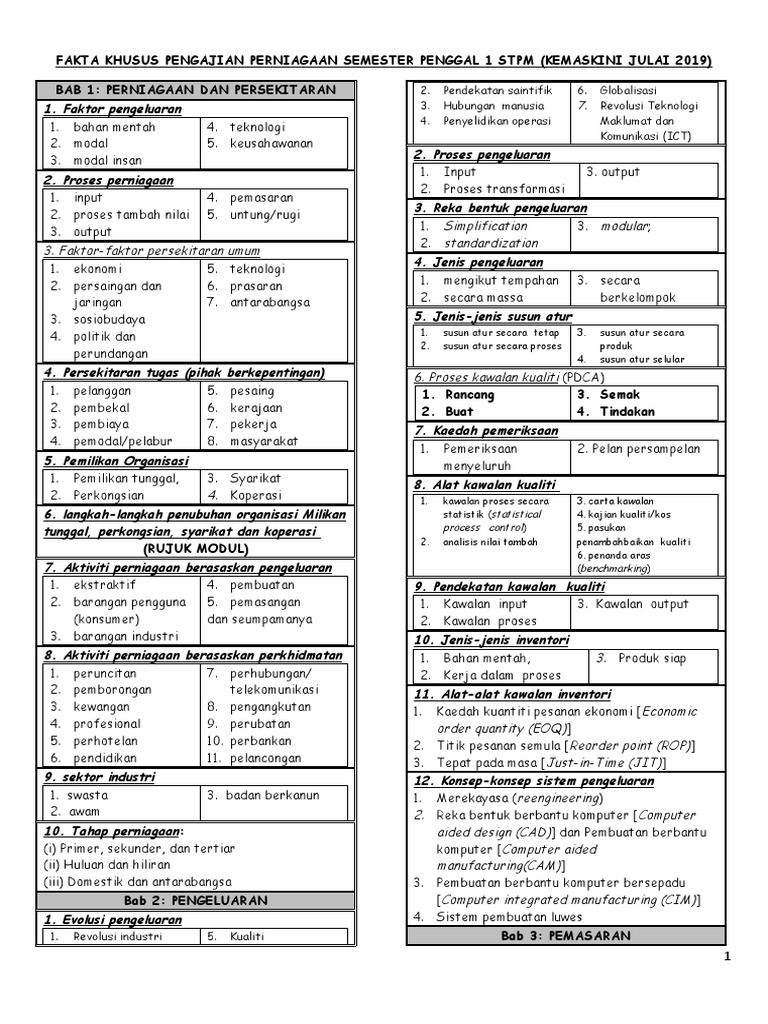 Fakta Khusus Pp S1 Docx Fakta Khusus Pengajian Perniagaan Semester Penggal 1 Stpm Kemaskini Julai 2019 Bab 1 Perniagaan Dan Persekitaran 1 Faktor Course Hero