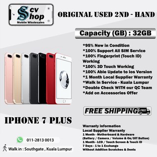 Scv Original Used 2nd Hand Apple Iphone 7 Plus 32gb 128gb 256gb 95 New Shopee Singapore